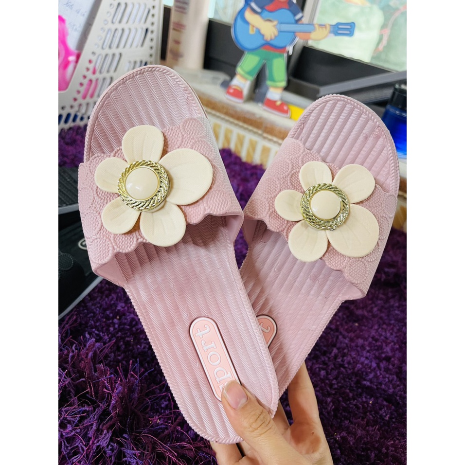 Dép Nữ Quai Ngang Đúc Nguyên Khối Hình Hoa ,Êm Mềm , Chịu Nước 0807