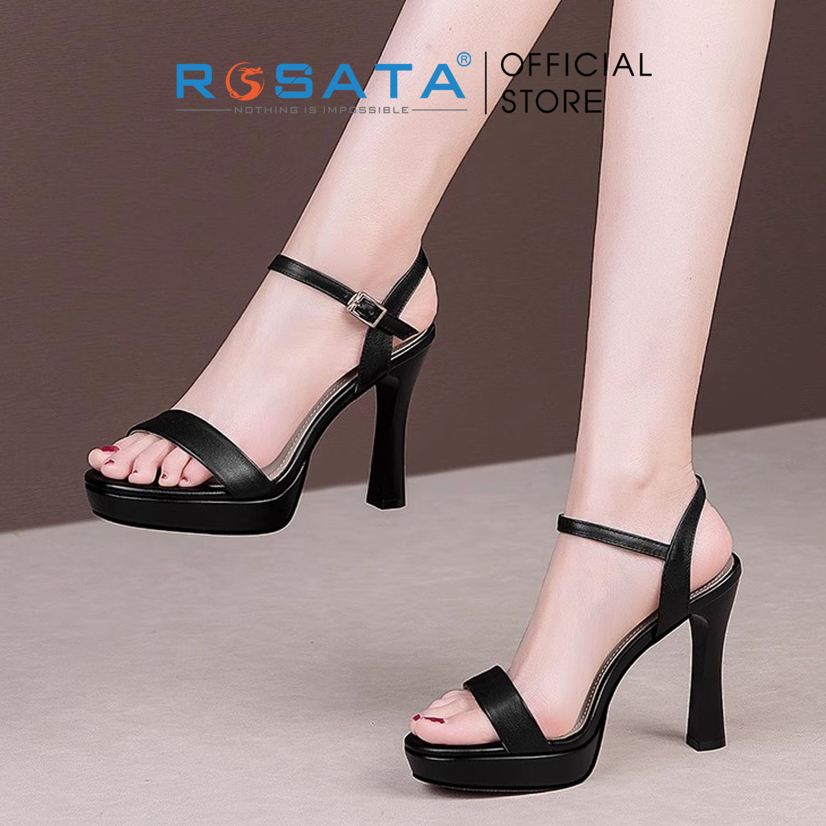 Tên sản phẩm: Dép sandal nữ ROSATA RO599 cao gót 9cm hở mũi khóa cài màu đen đế trụ vuông nhỏ