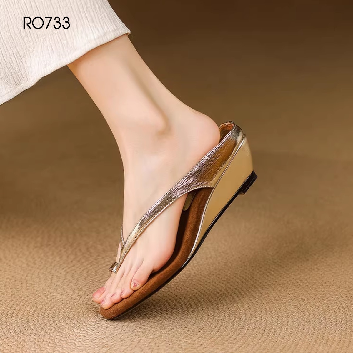 MÔ TẢ SẢN PHẨM: Dép nữ xỏ ngón, đế xuồng da lộn ROSATA RO733 - 5p - Bạc, Vàng - BKSTORE
