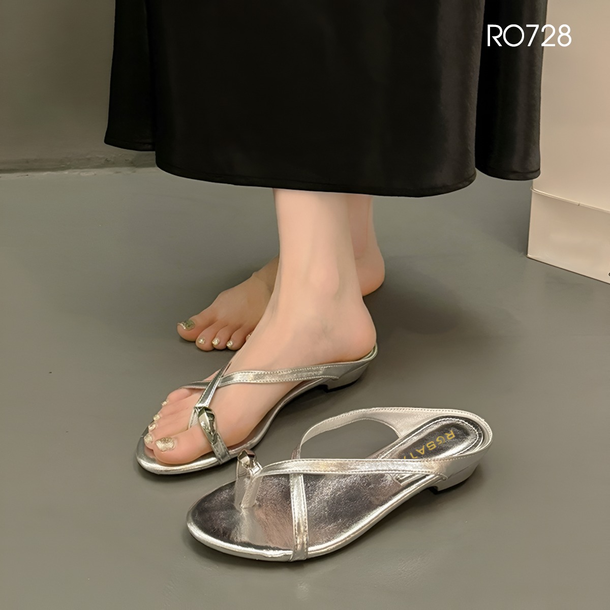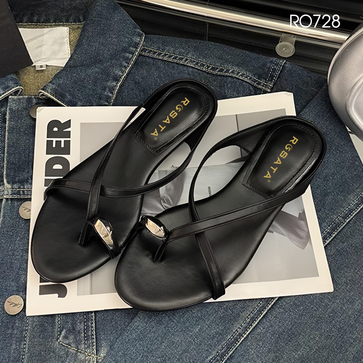 MÔ TẢ SẢN PHẨM: Dép nữ xỏ ngón, quai chéo ROSATA RO728 - 3p - Đen, Bạc - BKSTORE