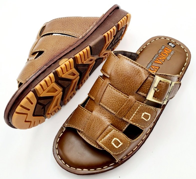 Dép quai ngang nam da bò thật 100% DONAVY,đính khuy thời trang may quai và đế rất chắc chắn DO3KD