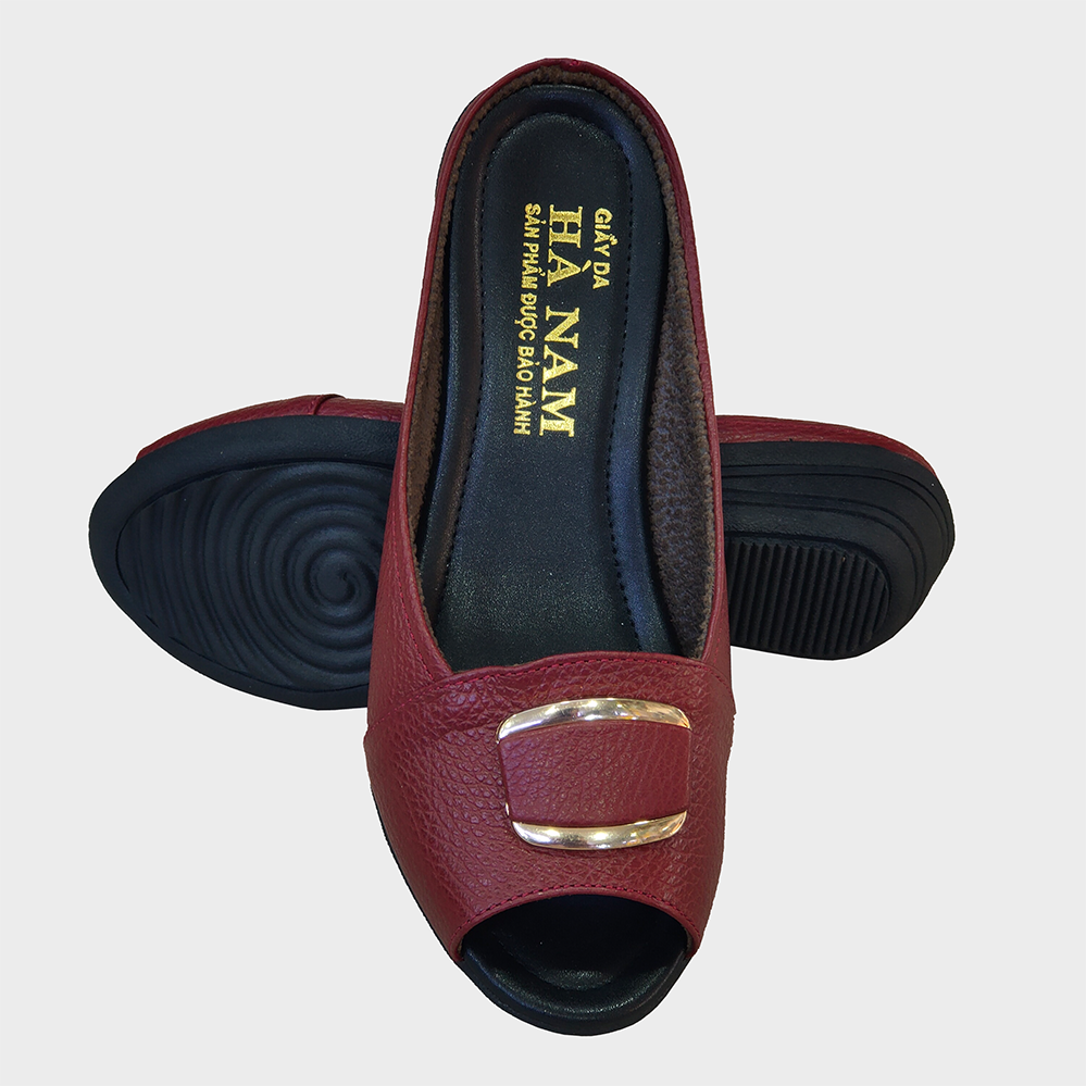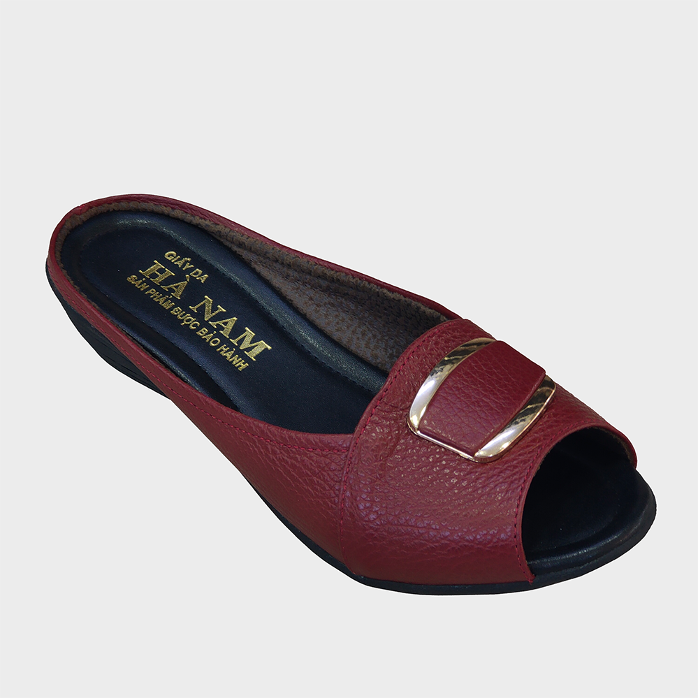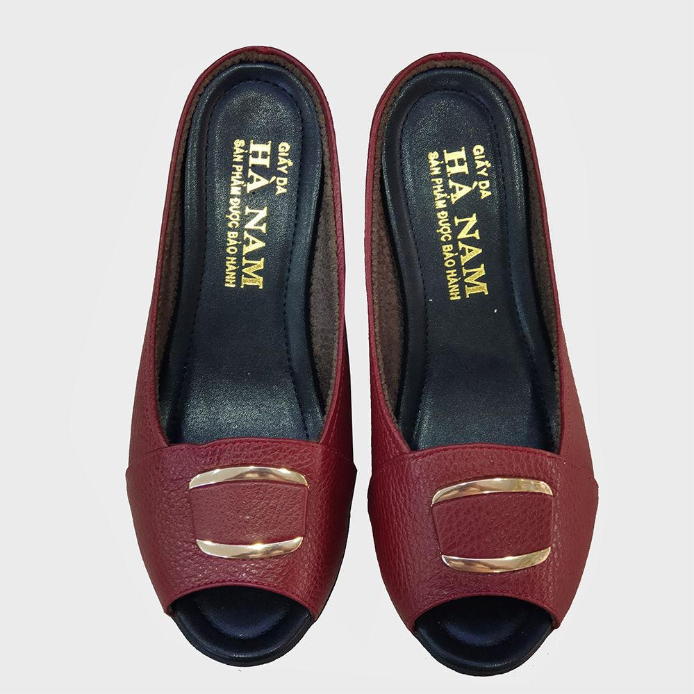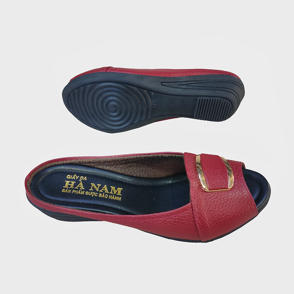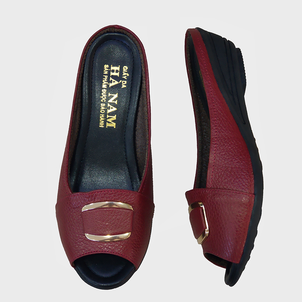 Dép Quai Ngang Nữ Đế Xuồng HÀ NAM Da Bò Thật Cao Cấp 4cm DNU2094