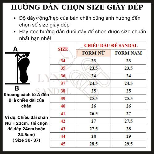 ◦ Tuỳ dáng bàn chân của bạn và kiểu dép, sẽ có sự chênh lệch size đôi chút.