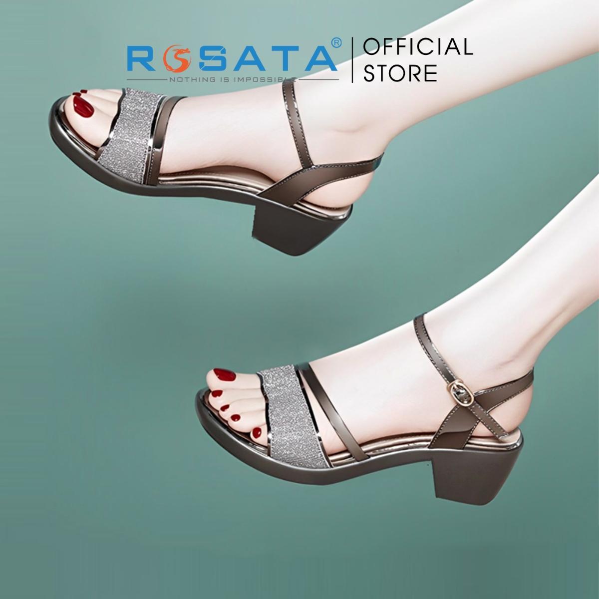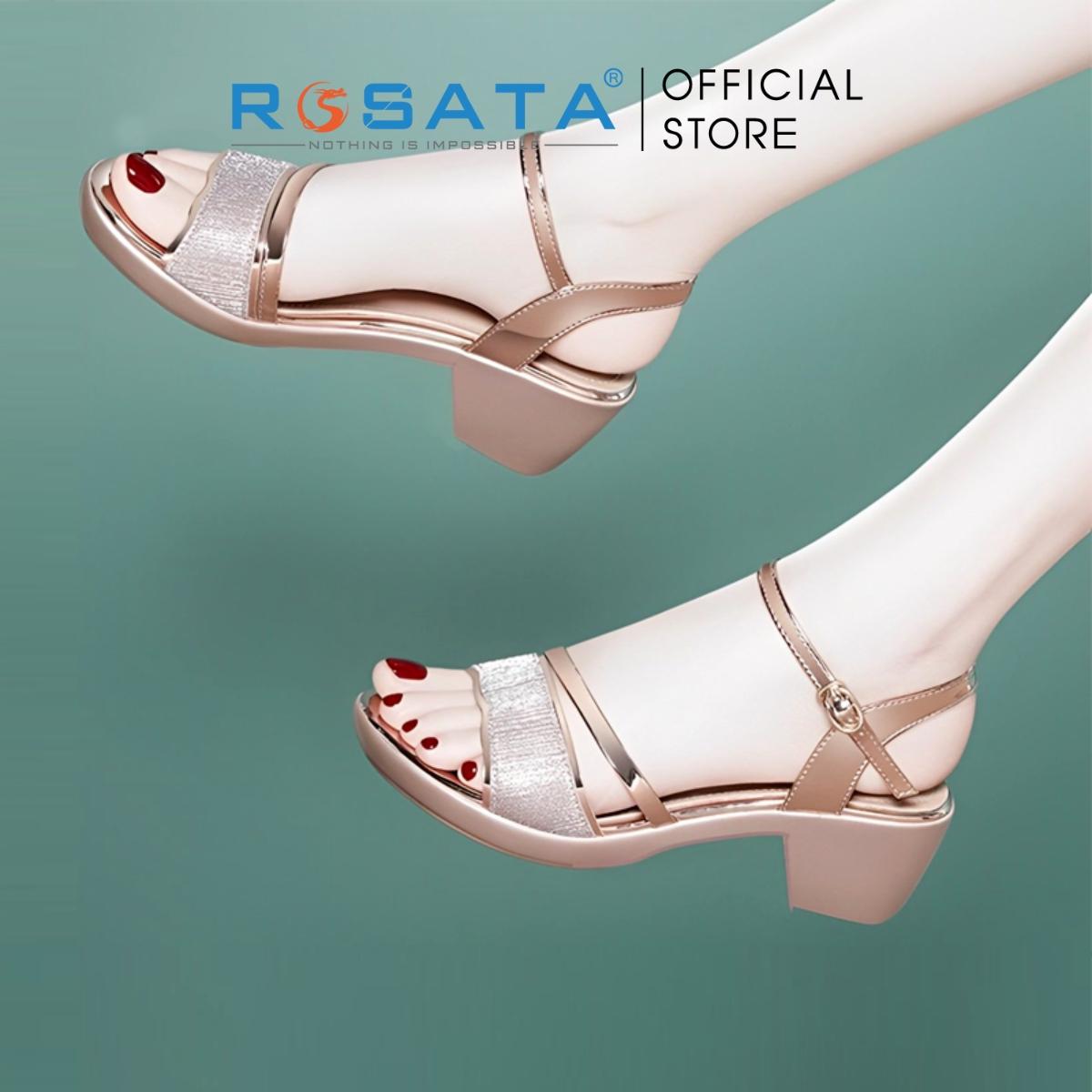Tên sản phẩm: Dép sandal nữ ROSATA RO530 mũi tròn xỏ ngón quai hậu cài khóa dây mảnh gót vuông cao 5cm xuất xứ Việt Nam