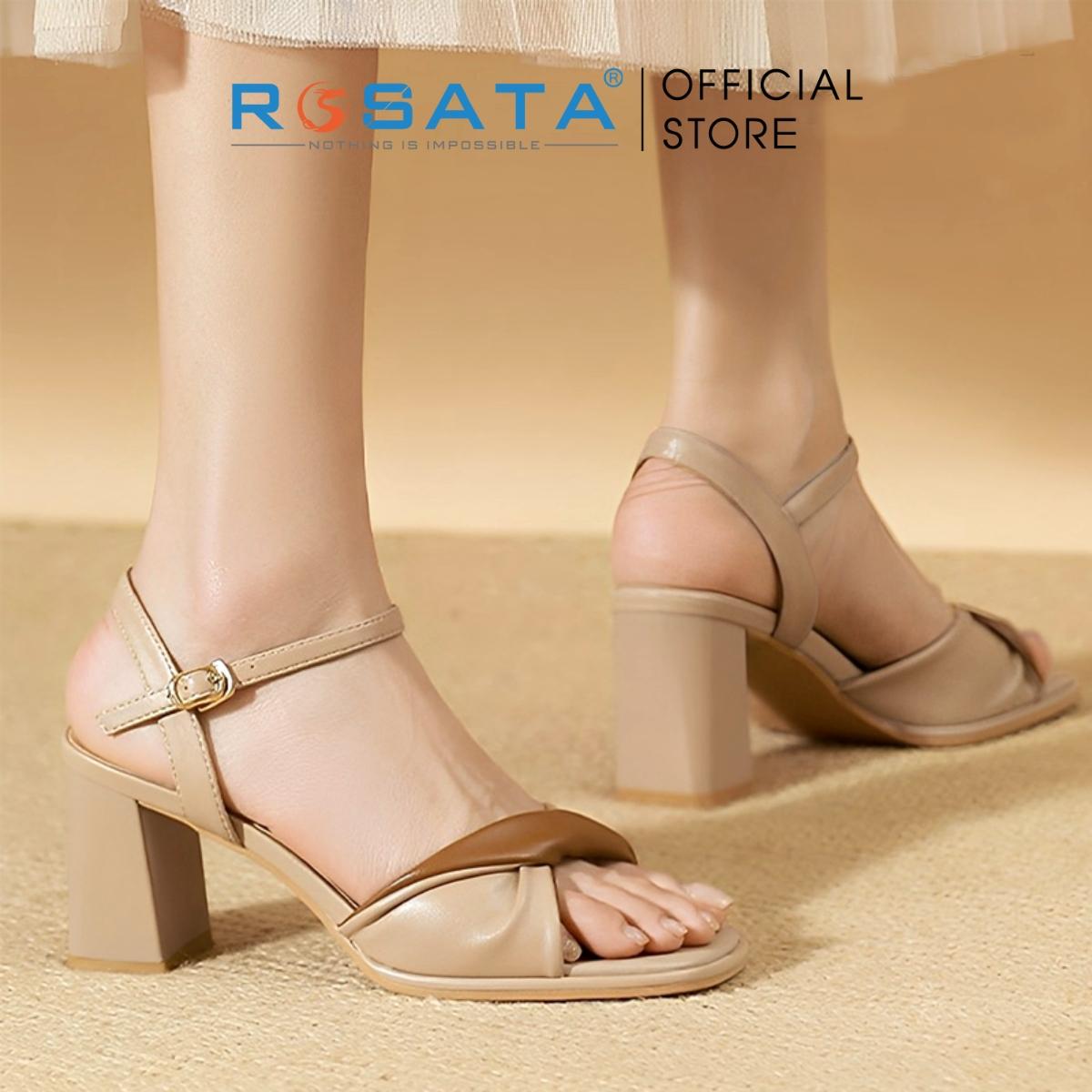 Tên sản phẩm: Dép sandal nữ ROSATA RO573 mũi tròn xỏ ngón phối kiểu quai hậu cài khóa dây mảnh gót vuông cao 6cm xuất xứ Việt Nam