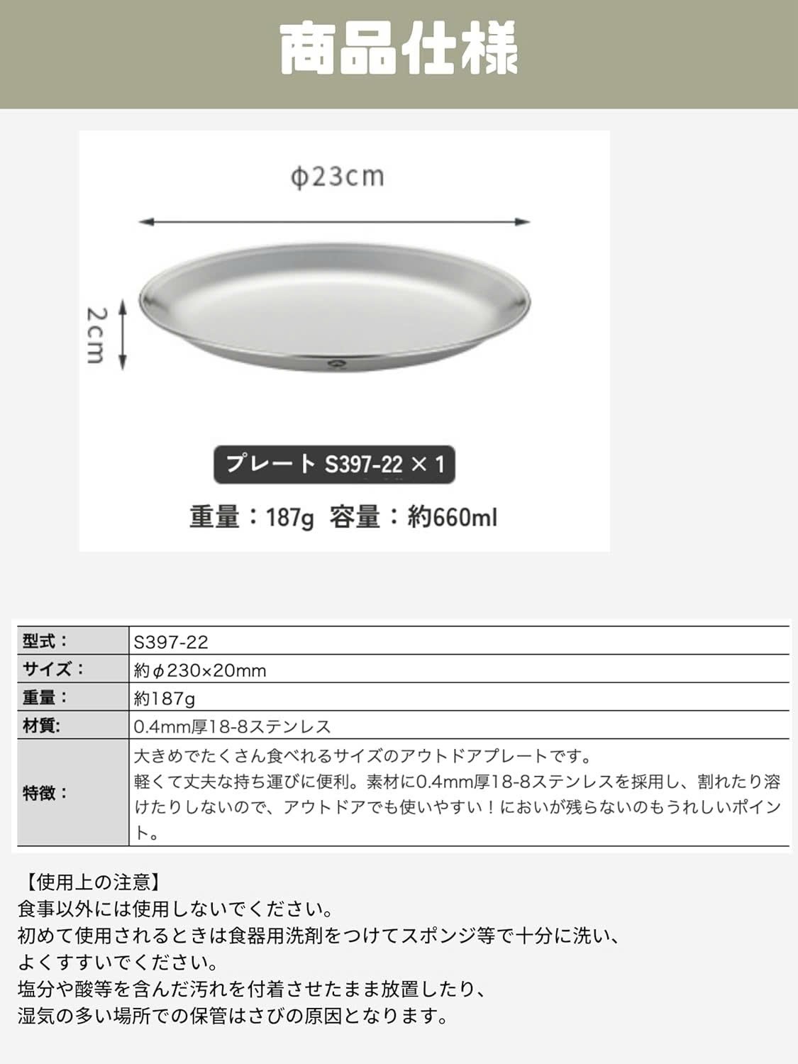 Đĩa đựng thức ăn size 22: φ9,1''×H 0,8''(230 × 20 mm), 187g