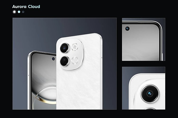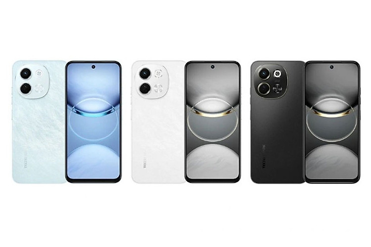 Mặt lưng của Tecno Spark 30 5G được thiết kế với ba lựa chọn màu sắc độc đáo: Đen (Midnight Shadow), Xanh dương (Azure Sky) và Trắng (Aurora Cloud). Mỗi phiên bản màu sắc đều mang đến vẻ đẹp riêng biệt với hoạ tiết chìm bắt mắt, giúp người dùng thể hiện cá tính của mình. Cụm camera được bố trí gọn gàng và nổi bật ở mặt sau, tạo điểm nhấn về mặt thẩm mỹ cho thiết bị.
