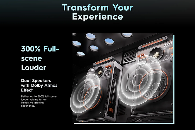 Về âm thanh, thiết bị được trang bị hệ thống loa stereo, mang lại trải nghiệm giải trí phong phú hơn khi xem video hoặc chơi game. Thêm vào đó, Tecno Spark 30 5G còn hỗ trợ âm thanh Hi-Res 24-bit/192kHz, cho chất lượng âm thanh tốt hơn khi sử dụng tai nghe có dây hoặc không dây tương thích.