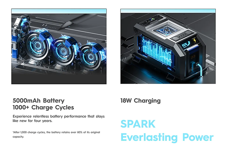 Thiết bị hỗ trợ sạc nhanh 18W thông qua cổng USB Type-C. Mặc dù tốc độ sạc không quá ấn tượng so với một số thiết bị cao cấp hơn có thể sạc với công suất 30W hoặc cao hơn, nhưng đây vẫn là tốc độ sạc phù hợp với phân khúc giá và dung lượng pin của thiết bị. Kết hợp giữa hiệu năng xử lý tối ưu của chip Dimensity 6300 được sản xuất trên tiến trình 6nm và dung lượng pin lớn, Tecno Spark 30 5G mang lại thời lượng sử dụng ấn tượng, đặc biệt là khi thực hiện các tác vụ thông thường.