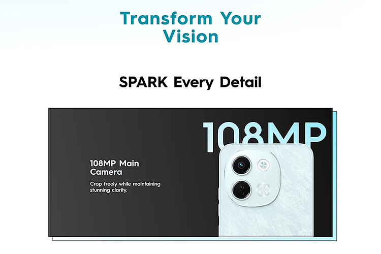 Hệ thống camera là một trong những điểm nổi bật của Tecno Spark 30 5G 6GB 128GB. Thiết bị được trang bị camera chính có độ phân giải lên đến 108MP với khẩu độ f/1.9 và công nghệ lấy nét tự động theo pha (PDAF). Độ phân giải cao này cho phép chụp ảnh với chi tiết sắc nét, đặc biệt trong điều kiện ánh sáng tốt.
