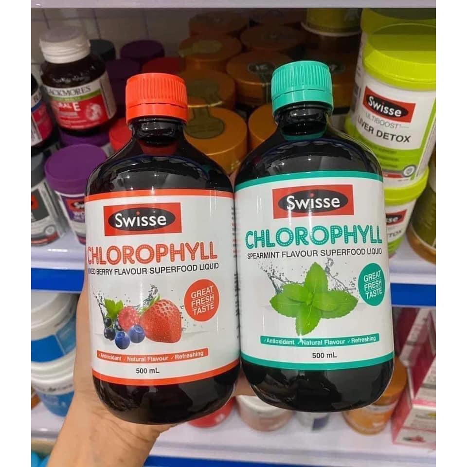 >> Sản phẩm không phải là thuốc, không có tác dụng thay thế thuốc chữa bệnh, Nước Diệp Lục Swisse Chlorophyll là sản phẩm hỗ trợ sức khỏe, được tinh chế từ sắc tố được tìm thấy trong lá cây, rất giàu tính kiềm, có thể sử dụng hàng ngày để hỗ trợ loại bỏ các chất cặn bã và độc hại ra khỏi cơ thể, giúp cơ thể khỏe mạnh. Swisse Chlorophyll với hai hương vị: dâu và bạc hà thơm ngon, dễ uống, hấp thu nhanh. 1. Nước diệp lục là gì? - Chất diệp lục (diệp lục tố, chlorophyll) là một sắc tố thực vật hấp thụ ánh sáng trong quá trình quang hợp. - Trong tự nhiên, chất diệp lục được tìm thấy với 2 hình thức chủ yếu là chlorophyll-a và chlorophyll-b. Cả 2 hình thức này đều tan trong chất béo, có nghĩa là để cơ thể tiêu hóa và hấp thụ tối đa chất diệp lục, bạn nên dùng chúng trong bữa ăn hoặc dùng với một lượng nhỏ chất béo. - Về mặt dinh dưỡng, diệp lục là nguồn cung cấp vitamin và khoáng chất dồi dào cho cơ thể, giúp nâng cao sức khỏe, góp phần thúc đẩy quá trình phục hồi vết thương trên da, tăng cường thải độc cơ thể và hỗ trợ bảo vệ gan, tốt cho máu, có thể giúp giảm cân và hoạt động như một chất khử mùi tự nhiên. (theo Wikipedia) 2. Công dụng của Nước Diệp Lục Swisse Chlorophyll - 1 ly = 5ml diệp lục + 240ml nước = 1kg rau xanh tự nhiên - Hỗ trợ cải thiện sức khỏe, thúc đẩy quá trình đào thải các chất cặn bã của cơ thể - Hỗ trợ cải thiện tình trạng mệt mỏi, căng thẳng do lao động, học tập quá sức - Hỗ trợ người đang theo chế độ ăn kiêng và duy trì cơ thể khỏe mạnh - Chiết xuất hoàn toàn tự nhiên, lành tính với người sử dụng, không tác dụng phụ - Phù hợp với người ăn chay 3. Thành phần của Nước Diệp Lục Swisse Chlorophyll - Nước tinh khiết, natri magiê chlorophyllin (2%), chất bảo quản (kali sorbate), chất chống oxy hóa (acid ascorbic), ethanol, dầu thực vật (bạc hà và dâu) - Không có thêm gluten, lactose, trứng, men, muối, màu sắc nhân tạo và hương vị nhân tạo. 4. Hướng dẫn sử dụng nước Diệp Lục Swisse Chlorophyll - Người trưởng thành và trẻ em từ 15 tuổi: uống từ 1 đến 3 thìa cà phê (5-15ml) Nước diệp lục Chlorophyll Swisse mỗi sáng, ngay khi ngủ dậy - Nên uống nước diệp lục Chlorophyll Swisse trước khi ăn sáng - Có thể uống trực tiếp hoặc pha với nước hoặc nước hoa quả để uống - Lắc đều chai trước khi sử dụng. - Phụ nữ có thai, đang cho con bú, người đang sử dụng bất cứ sản phẩm bổ sung hay kê đơn nào khác nên tham khảo tư vấn của chuyên gia y tế trước khi sử dụng nước diệp lục. 5. Đối tượng sử dụng Nước Diệp Lục Swisse Chlorophyll: - Người không ăn đủ rau quả, quả - Người đang ăn kiêng hay muốn duy trì sức khỏe tốt - Cơ thể trong tình trạng thiếu hụt vitamin, khoáng chất và chất xơ - Muốn tăng cường lượng rau vào chế độ ăn uống - Không có thời gian chuẩn bị bữa ăn có đầy đủ rau xanh