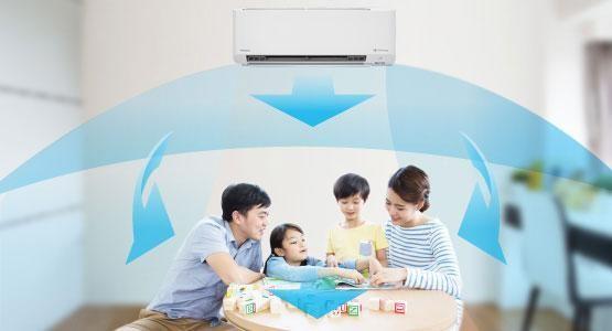 Sự phối hợp nhịp nhàng của các luồng gió Lên-Xuống /Trái-Phải giúp lưu thông không khí đến mọi nơi trong phòng để làm mát đồng đều cả những không gian rộng lớn tạo cảm giác thoải mái tối đa.