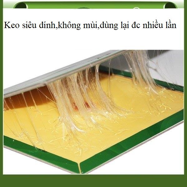 📢📢 THÔNG TIN SẢN PHẨM Tên sản phẩm :Tấm dính chuột, dán cao cấp không mùi tặng chất thu hút chuột siêu chặt - Kích thước: 34x22cm - Khối lượng : 150 g - Xuất xứ : Trung Quốc 📢 Công dụng: Tấm dính chuột siêu chặt giúp bạn diệt chuột ,dán một cách an toàn, hiệu quả lại thân thiện với môi trường & có thể tái sử dụng nhiều lần. Chuột bị dính chặt vào keo và ở yên một chỗ mà không chạy lung tung và chết rồi bốc mùi khó chịu ở những góc khuất trong nhà như khi sử dụng các loại thuốc chuột thông thường - Sản phẩm gồm keo bằng bìa các tông dày, cứng với lớp keo dày và siêu dính. - Giúp bạn diệt chuột một cách an toàn, hiệu quả lại thân thiện với môi trường & có thể tái sử dụng nhiều lần. 📢 Cách sử dụng rất đơn giản: Mở keo ra và đặt ở những nơi thường xuất hiện chuột (nếu chuột xuất hiện ở nhiều nơi thì nên đặt nhiều keo cùng lúc) - Nếu keo dính vào tay và quần áo có thể làm sạch bằng xăng hoặc dầu hỏa. - Keo không mùi, không độc hại. - Độ dính của keo rất cao. Đặc biệt, keo không bị chảy khi trời nóng, không bị khô se bề mặt khi thời tiết lạnh. - Lượng keo nhiều nên sau khi bắt dính chuột, có thể gỡ bỏ chuột và tái sử dụng. 📢 Hướng dẫn cách đặt bẫy: - Cách 1: Đặt mồi nhử hoặc gói mồi đi kèm vào giữa bẫy rồi đặt vào khu vực xuất hiện chuột cắn phá tài sản - Cách 2: Đặt đúng trên đường chuột chạy qua lại (Chú ý: chuột hay chạy sát tường, qua các khe tủ, các khe đồ vật) 📌 Lưu ý: tránh khu vực có nước hoặc bụi bẩn làm giảm độ dính của keo.