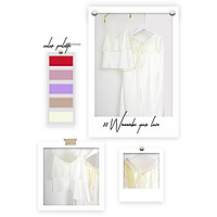 Đồ bộ mặc nhà phi lụa WANNABE BDS07 bộ dài áo croptop, quần dài ống suôn thắt nơ eo, áo ba lỗ lưng ren xinh đẹp
