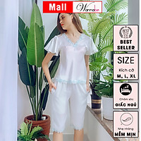 Đồ bộ mặc nhà phi lụa Wannabe, bộ lửng BLS06 tay áo phối ren hoa nhã nhặn