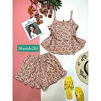 Bộ ngủ 2 dây,đồ bộ nữ mặc nhà đùi tầng vải lụa BN 120 họa tiết hoa nhí size 47-60kg