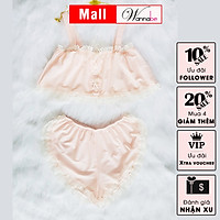 Đồ bộ mặc nhà phi lụa WANNABE BSS12 bộ sọt 2 dây đính nơ sườn khoe eo thon nữ tính quyến rũ