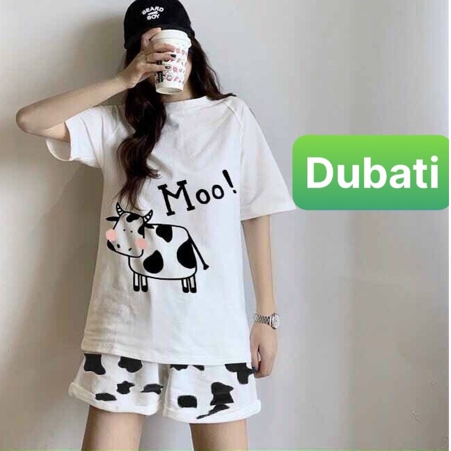 Giới thiệu ĐỒ BỘ THỂ THAO NỮ BÒ SỮA MOO HOẠT HÌNH THUN COTTON SIÊU MÁT NAM NỮ, SÉT ĐỒ MẶC Ở NHÀ BỘ ĐỒ NGỦ CAO CẤP - DUBATI FASHION
