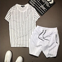 BỘ QUẦN ÁO THỂ THAO NAM NGẮN HỌA TIẾT RẰN RI PHỐI VIỀN