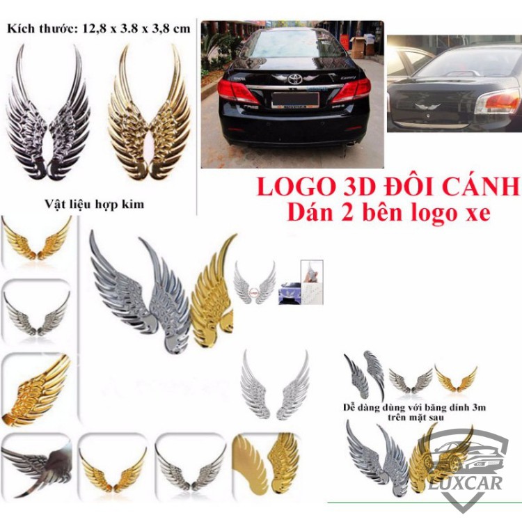 Đôi cánh thiên thần 3D LUXCAR dán trang trí logo hãng ô tô cao cấp