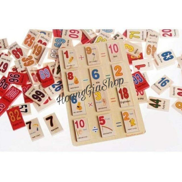 - Với bộ số trên 100 số và các phép tính cộng, trừ, nhân, chia; bố mẹ có thể giúp bé thực hiện nhiều phép toán khó hơn nữa. Ngoài ra bé có thể xếp lên để tạo hiệu ứng domino chữ số đấy.