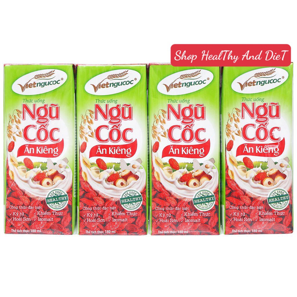 Ngũ cốc Ăn Kiêng uống liền – Dáng thon da đẹp. • Thành phần: Thảo dược (kỷ tử, khiếm thực, hoài sơn) 1%, canxi 0.015%, chất tạo ngọt tự nhiên:đường isomalt, bột kem thực vật, bắp, đậu nành, gạo nguyên cám, đậu xanh, hạt sen, yến mạch, sữa bột, đạm sữa, bột váng sữa, chất ổn định (E418), chất tạo ngọt: sucralose, chất chống oxi hóa (vitamin C, vitamin E), gia vị vừa đủ, hương tổng hợp các loại, nước. • Công dụng: Ngũ cốc ăn kiêng uống liền của là thức uống bổ sung vitamin và khoáng chất cùng các loại thảo dược nhằm tăng cường sức khỏe, đặc biệt tốt cho người tiểu đường, béo phì. • Hướng dẫn sử dụng: Thích hợp cho trẻ từ 3 tuổi trở lên và người lớn, đặc biệt tốt cho người tiểu đường, béo phì. Sản phẩm cho 1 lần sử dụng. Ngon hơn khi uống lạnh. Nên dùng từ 2-3 hộp mỗi ngày. • Dung tích: 180ml. • Hạn sử dụng: 6 tháng kể từ ngày sản xuất. • Quy cách: 4 hộp/lốc ; 10 lốc/thùng.