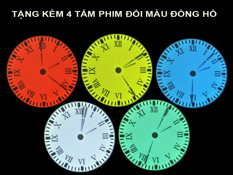 * Có thể thay đổi 5 màu ánh sáng đồng hồ bằng cách kết hợp các tấm phim màu tặng kèm.