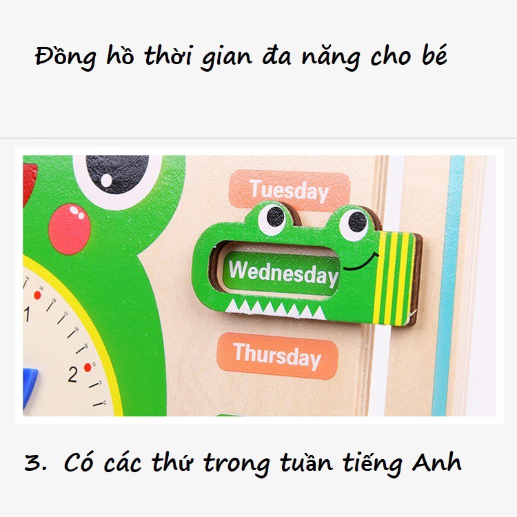 - Giúp bé có thể học xem giờ, học phân biệt các khung giờ trong ngày sáng trưa tối, học thứ trong tuần, ngày trong tháng, tháng trong năm, mùa xuân hạ thu đông và thời tiết mưa nắng.