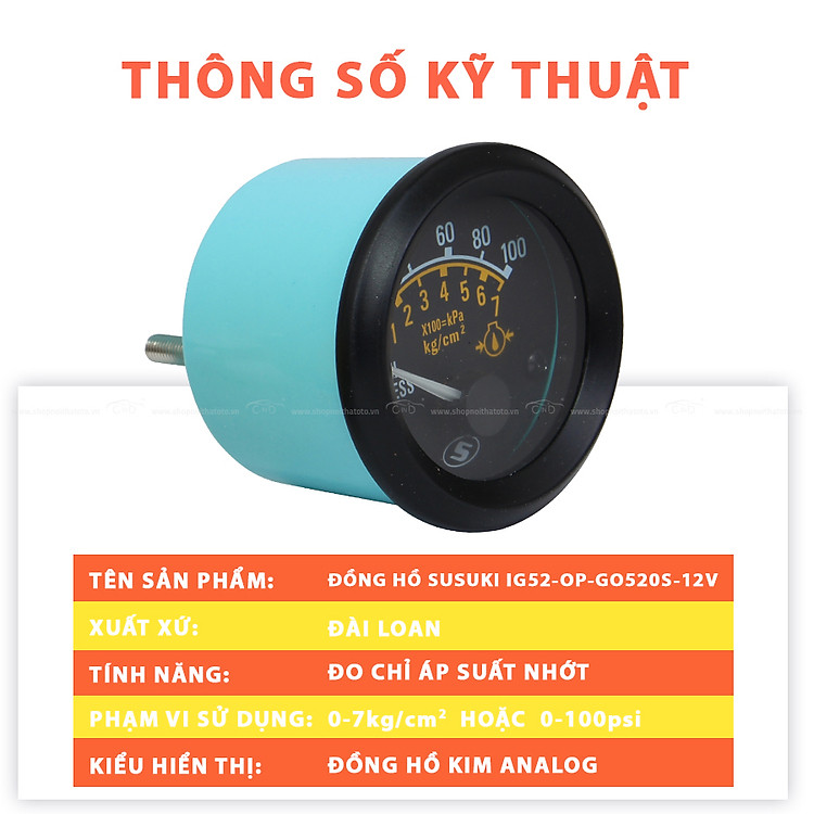 Đồng hồ đo áp suất dầu nhớt SUSUKI IG52-OP-GO520S 12v được làm bằng hợp kim tiêu chuẩn, các thông số đo rõ ràng, khả năng đo cả đơn vị kg/cm2 lẫn đơn vị PSI thuận lợi cho việc sử dụng trên hệ thống xe.