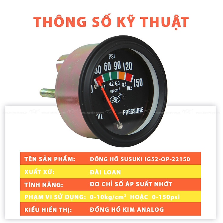 Đồng hồ đo áp suất dầu nhớt IG52-OP-22150 10kg được làm bằng hợp kim tiêu chuẩn, các thông số đo rõ ràng, khả năng đo cả đơn vị kg/cm2 lẫn đơn vị PSI, thuận lợi cho việc sử dụng trên hệ thống xe tải hoặc tàu thuyền.