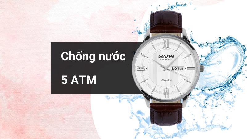 - Đồng hồ được đảm bảo an toàn với độ chống nước 5 ATM, bạn thoải mái đeo khi tắm, rửa tay hay đi mưa, không mang khi bơi, lặn.