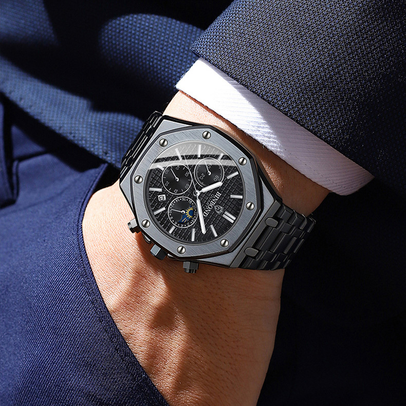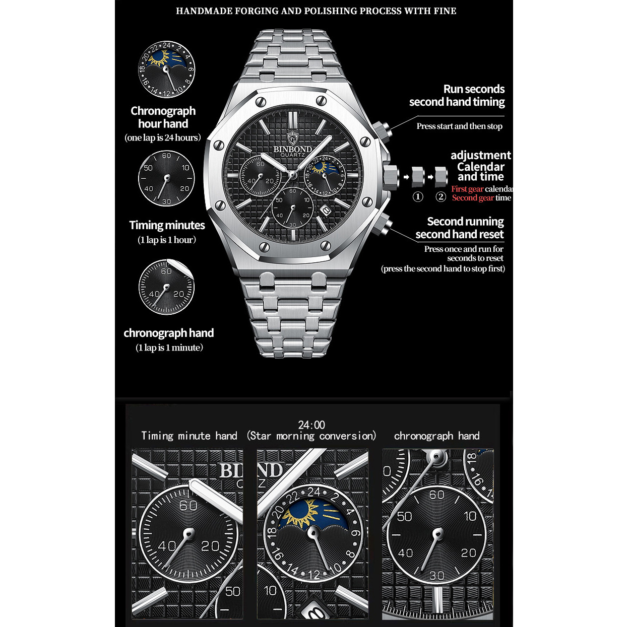 - Đồng Hồ Nam, đồng hồ BINBOND sở hữu thiết kế sang trọng với các chi tiết được chế tác tinh xảo, góp phần nâng tầm phong cách của người đeo.