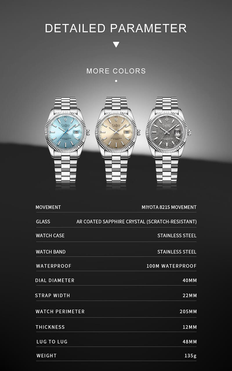 Kiểu máy | Japan Miyota Automatic Mov't (Máy cơ tự động Miyota - Nhật Bản) |