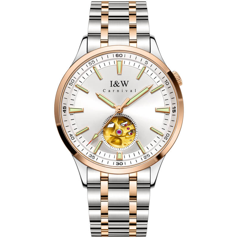 Đồng hồ nam chính hãng IW CARNIVAL IW590G-1 Kính sapphire ,chống xước,Chống nước ,Bảo hành 24 tháng,Máy cơ (Automatic),Dây kim loại thép không gỉ 316L,thiết kế lộ cơ