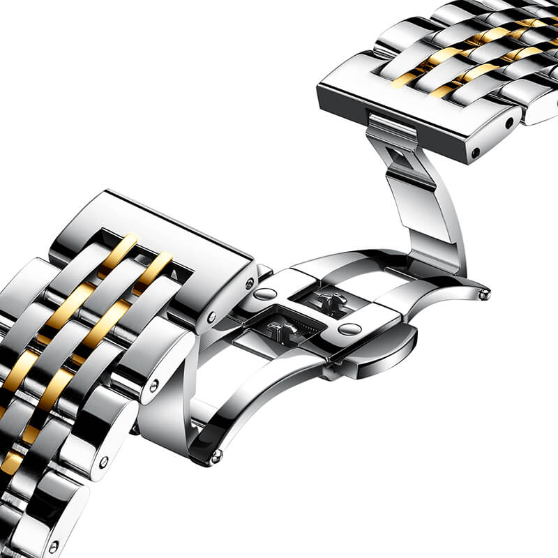 Những mẫu đồng hồ mạ vàng của thương hiệu Kassaw đa phần sử dụng công nghệ mạ chân không PVD tiên tiến trên nền chất liệu thép không gỉ 316L cao cấp - một loại thép bền, không bị ăn mòn hay trầy xước và cực kỳ an toàn, không gây kích ứng da.