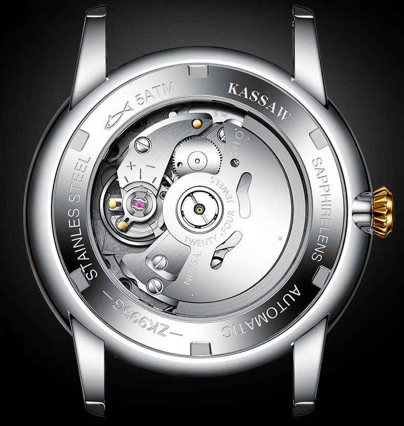 Về máy móc, KASSAW K995-2 chạy máy cơ NH35A của Seiko có tích hợp chức năng lên cót tay và dừng kim giây khi chỉnh giờ. Thương hiệu máy móc chính hãng từ ông lớn số 1 Nhật Bản chính là sự đảm bảo chất lượng bền bỉ của cỗ máy.
