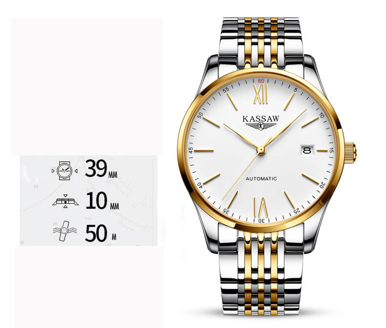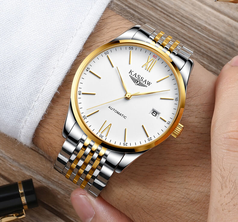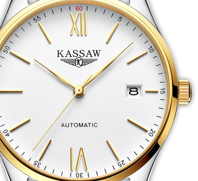 Ngay từ cái nhìn đầu tiên, KASSAW K864-1 đã toát lên vẻ lịch lãm và sang trọng với thiết kế demi kết hợp 2 sắc màu vàng - trắng