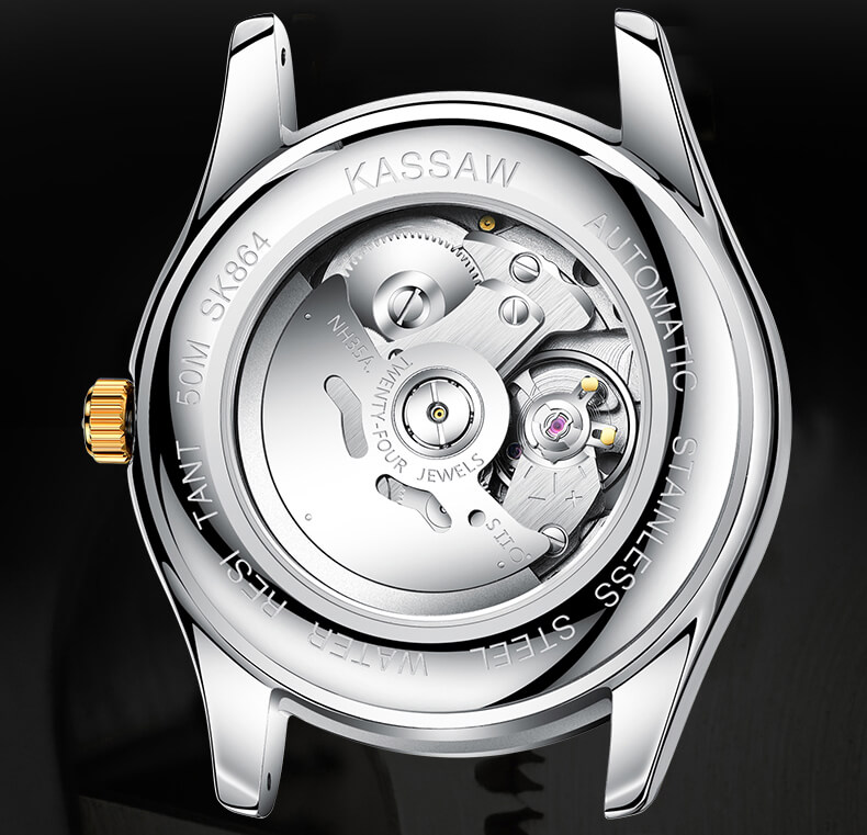 Về máy móc, KASSAW K864-1 chạy máy cơ NH35A của Seiko có tích hợp chức năng lên cót tay và dừng kim giây khi chỉnh giờ. Thương hiệu máy móc chính hãng từ ông lớn số 1 Nhật Bản chính là sự đảm bảo chất lượng bền bỉ của cỗ máy.