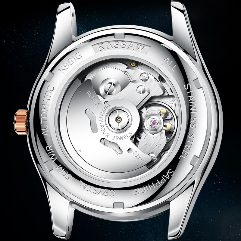 ️ Trái tim của "nàng" KASSAW K961-5 l này là máy NH35A nên đảm bảo độ chính xác cao hơn. Với 24 jewels, tần số dao động ở mức 21.600 VPH nên kim giây chạy khá mượt.