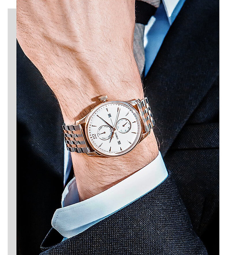 - Kiểu dáng lịch lãm dành riêng cho nam giới với 4 chức năng phụ trên mặt đồng hồ được sắp xếp đối xứng nhau cho ta cảm giác vô cùng gọn gàng mà vẫn giữ được nét sang trọng.