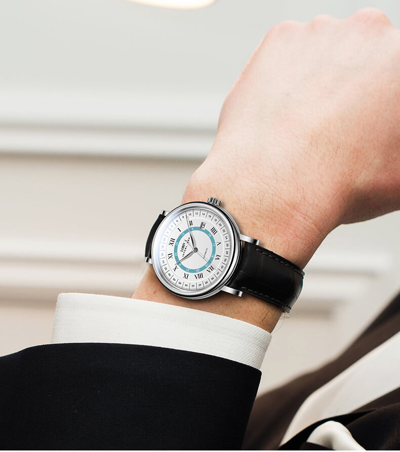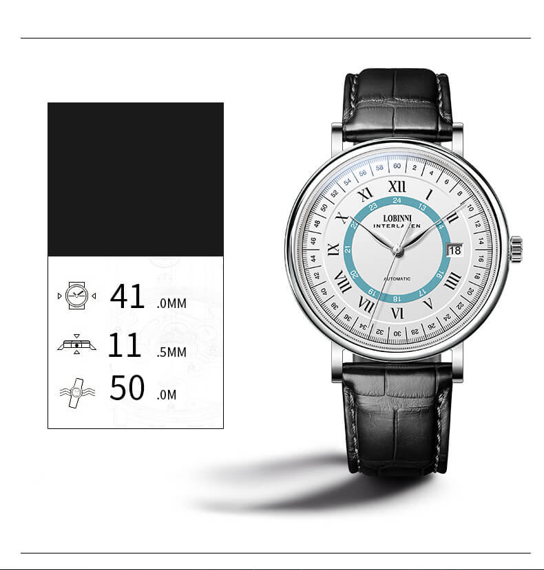 Đắm mình trong hơi thở cổ điển, Đồng hồ nam chính hãng LOBINNI L15006-2 vẫn ghi dấu trong dáng tròn truyền thống.