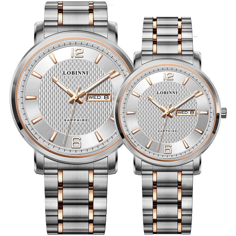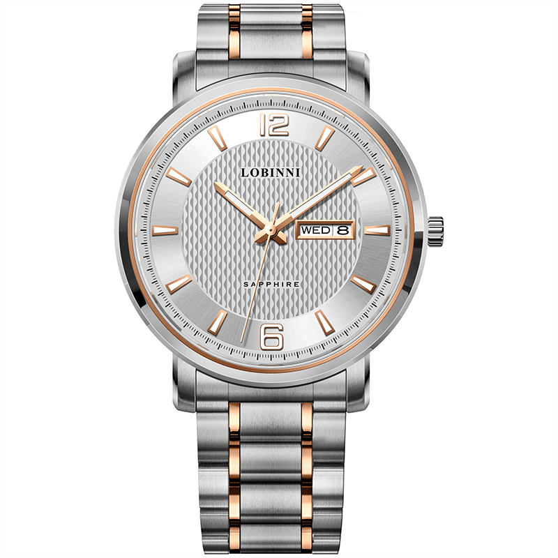 Toàn bộ cọc Số đều được đính đá nhân tạo, Tô điểm cho sự sang trọng quyền quý mà chiếc đồng hồ Lobinni L3004-1 mang lại cho người đeo