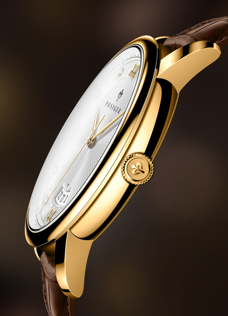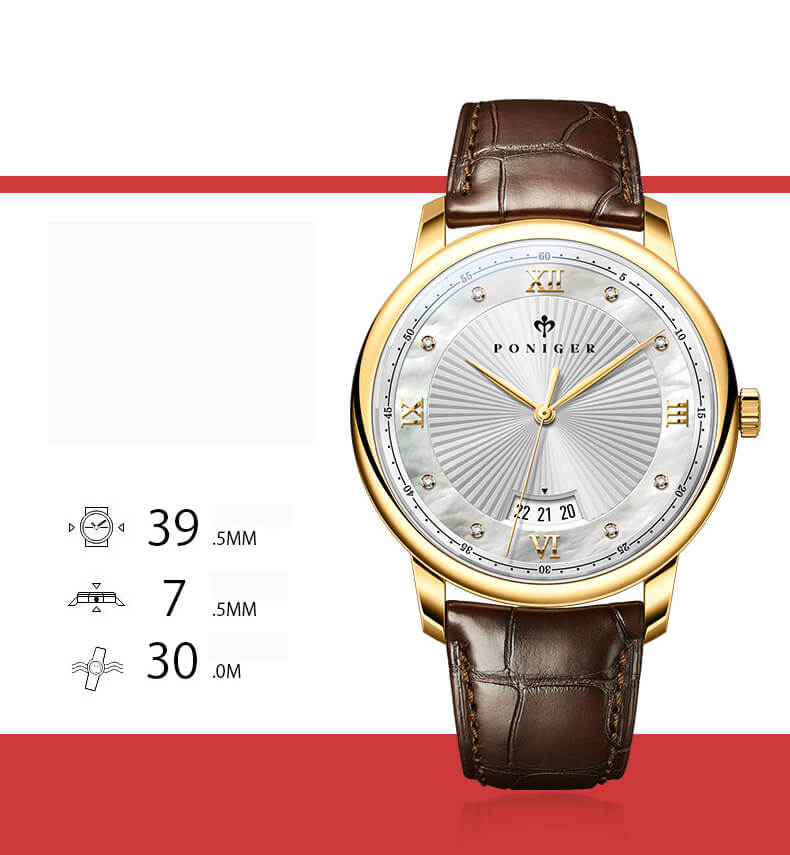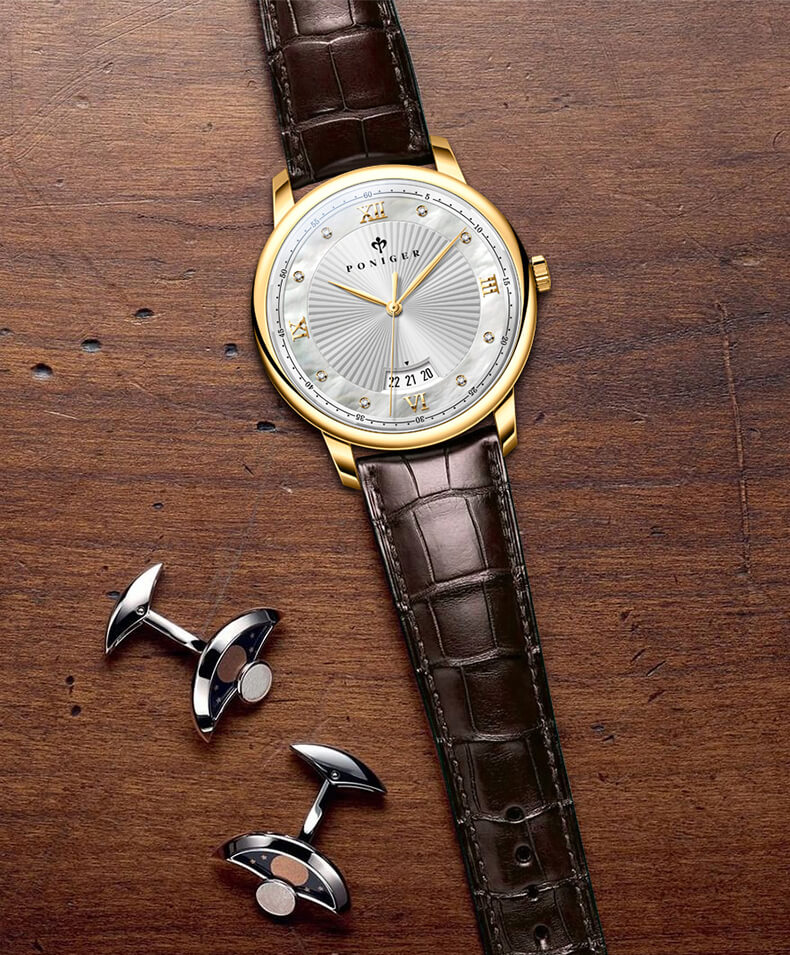 Giới thiệu Đồng hồ nam chính hãng Poniger P203-1 Fullbox, Kính sapphire ,chống xước,chống nước,mặt trắng vàng dây da nâu xịn, thép không gỉ 316L, Mới 100%,Bảo hành 24 tháng,thiết kế đơn giản trẻ trung và sang trọng