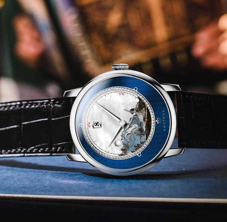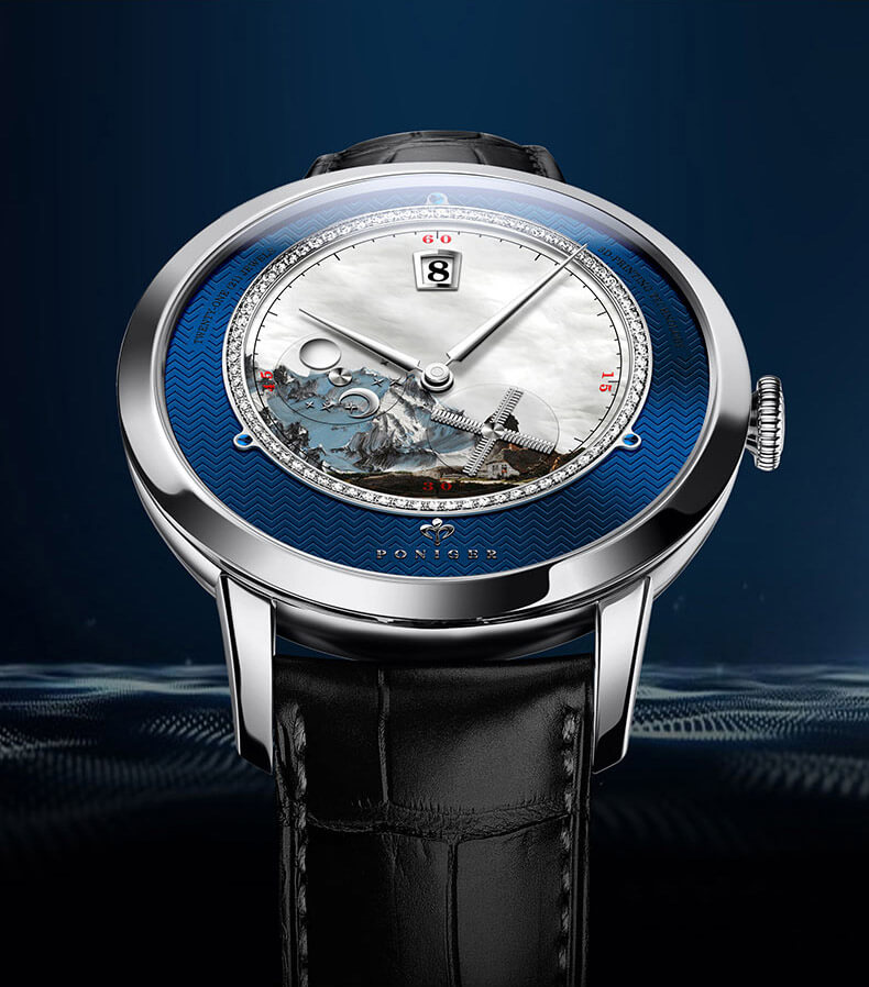Giới thiệu Đồng hồ nam chính hãng Poniger P723-1 ,Fullbox, Kính sapphire ,chống xước,chống nước,dây da đen xịn, thép không gỉ 316L, Mới 100%,Bảo hành 24 tháng,thiết kế lộ cơ trẻ trung và sang trọng