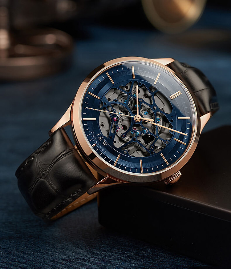 QUYẾN RŨ với thiết kế skeleton xuyên thấu từ mặt trước ra mặt sau, SANG TRỌNG với lớp khung vỏ mạ vàng nổi bật, cỗ máy I&W 524G khiến cánh mày râu “đứng ngồi không yên” ngay từ lần đầu tiên ra mắt.