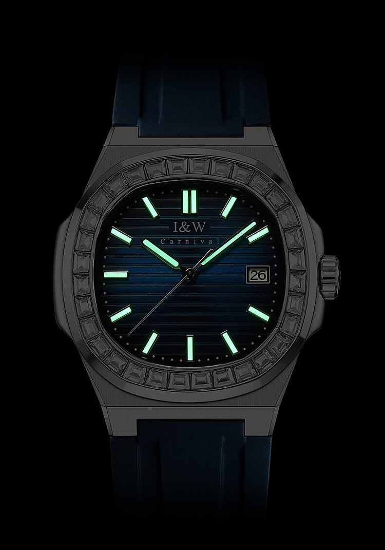 I&W Carnival 721G không chỉ đẹp mắt mà còn thực sự hữu ích. Kim và cọc số được phủ lớp dạ quang giúp bạn dễ dàng nhận biết giờ trong điều kiện thiếu ánh sáng.