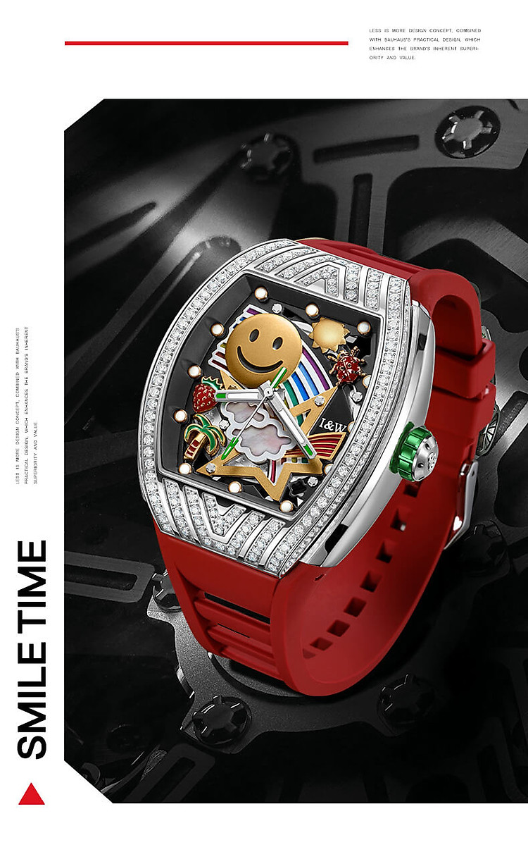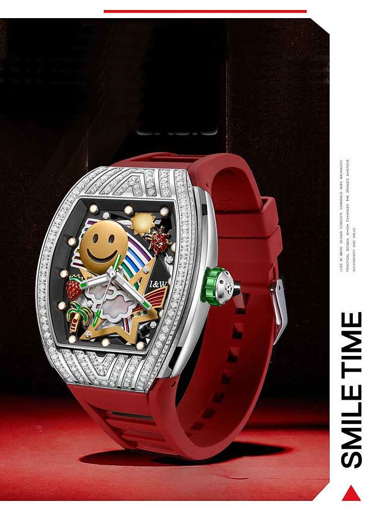 Thương hiệu: I&W Carnival (Thương hiệu cao cấp của Carnival) Quốc gia đăng ký thương hiệu: Thụy Sỹ Bảo hành: Lên đến 5 năm - Lau dầu miễn phí trọn đời Mã sản phẩm: 757G1 Giới tính: Nam Kiểu máy: Japan Miyota Automatic Mov't (Máy cơ tự động Miyota - Nhật Bản): - 21 chân kính (Jewels). - Tần số dao động 21.600 vph. - Khả năng trữ cót lên đến hơn 42h. Đường kính mặt: 43 mm Độ dày: 12 mm Chất liệu vỏ: Thép không gỉ 316L Chất liệu dây: silicon Mặt kính: Sapphire Crystal nguyên khối chống xước Độ chịu nước: 5 ATM Đặc điểm nổi bật: - Phong cách thiết kế Dress watch - Kim và cọc số phủ dạ quang. - Case back xuyên thấu.