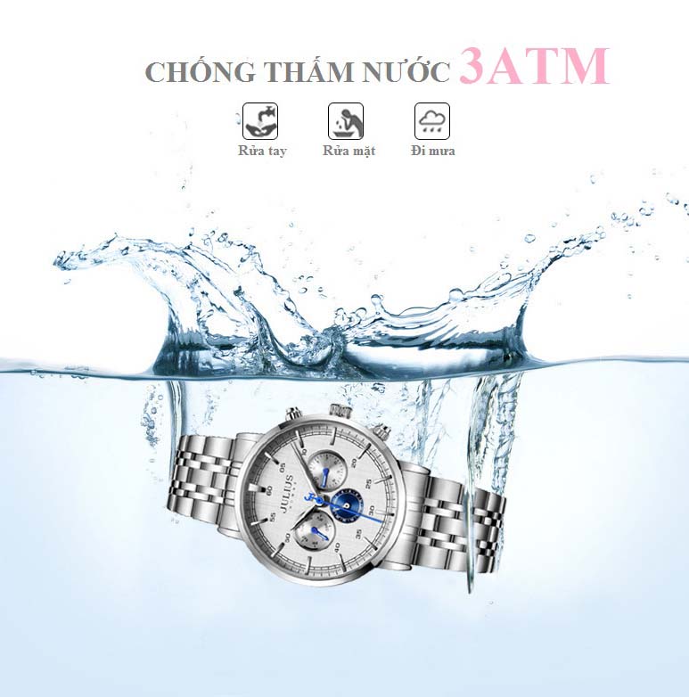 Khả năng chịu nước: Chống thấm nước 3ATM (30m) có thể đi mưa, rửa tay, rửa mặt. Tránh tiếp xúc với môi trường hóa chất như giặt đồ, tấm gội.