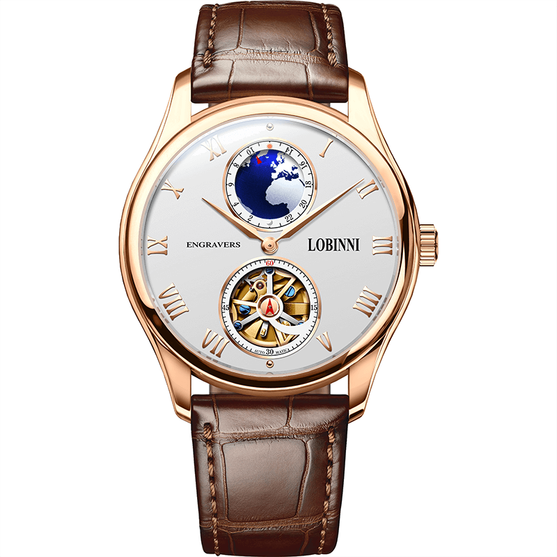 Đồng hồ nam Lobinni L13006-1 Chính hãng Thụy sỹ ,Kính sapphire nguyên khối ,chống xước,chống nước 50m,mặt trắng vỏ vàng hồng dây da nâu xịn, thép không gỉ 316L,Đồng hồ cơ (Automatic) bảo hành 24 tháng, hàng mới 100%,thiết kế lộ cơ trẻ trung và sang trọng