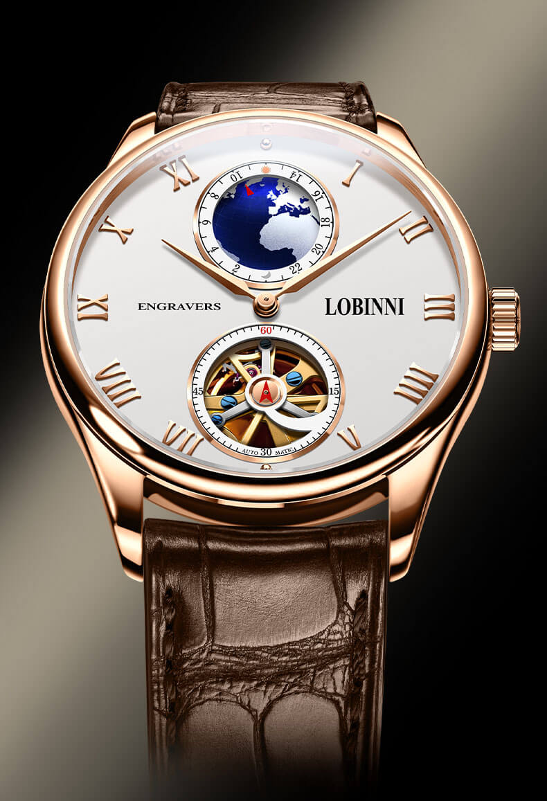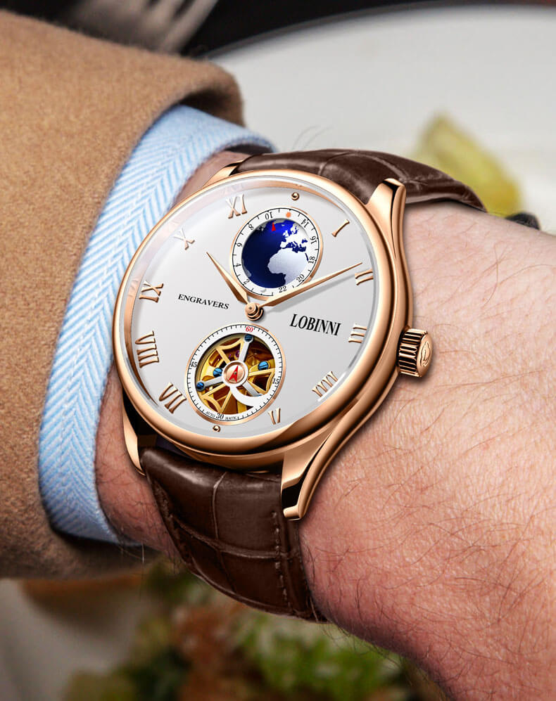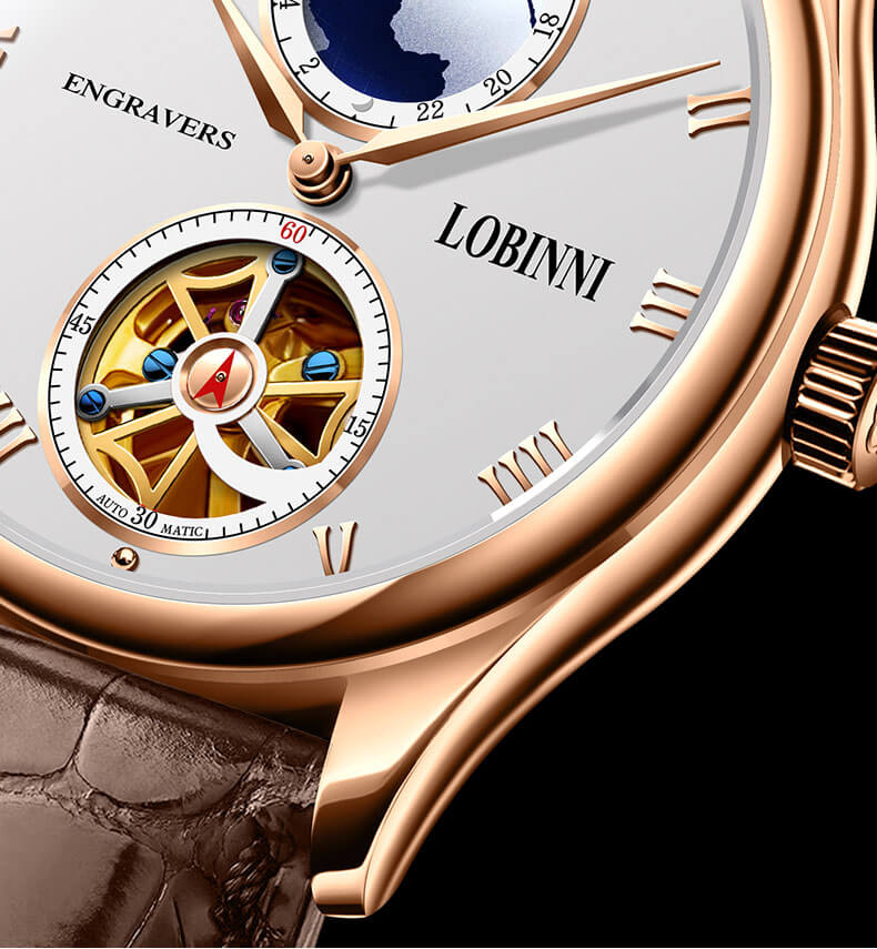 Giới thiệu Đồng hồ nam Lobinni L13006-1 Chính hãng Thụy sỹ ,Kính sapphire nguyên khối ,chống xước,chống nước 50m,mặt trắng vỏ vàng hồng dây da nâu xịn, thép không gỉ 316L,Đồng hồ cơ (Automatic) bảo hành 24 tháng, hàng mới 100%,thiết kế lộ cơ trẻ trung và sang trọng